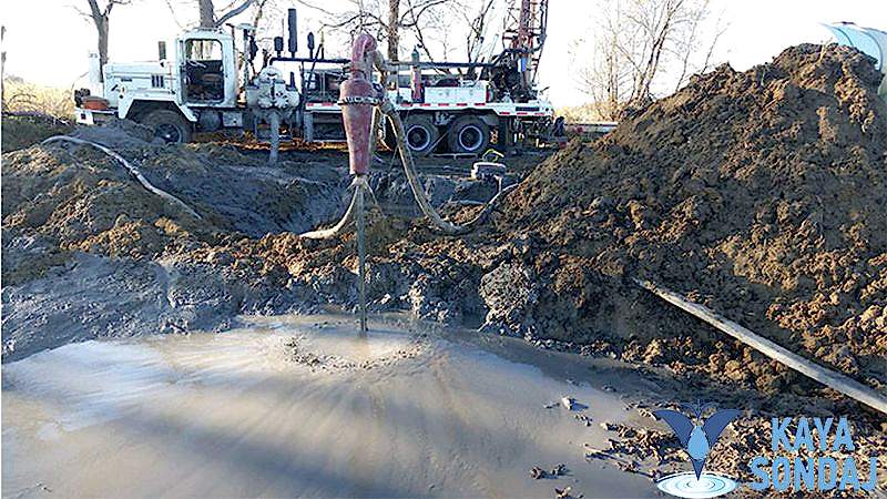 Kaya ortamda – Sert Kayalarda kullanılan Sondaj tekniği ile yumuşak-kendini tutamayan zeminlerde kullanılan sondaj tekniği farklıdır. Kendini tutamayan yumuşak formasyonlarda çamur sirkülasyonu ile sondaj yapılır,Kaya ortamda ise sondaj,hava sirkülasyonu ile gerçekleşir. Bazı kuyular açılırken her iki sondaj tekniği de kullanılır.